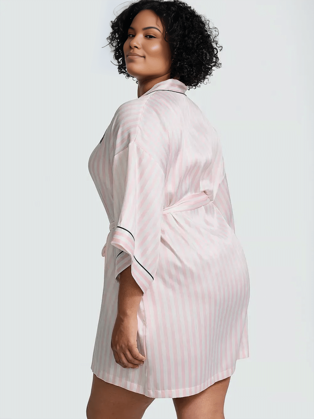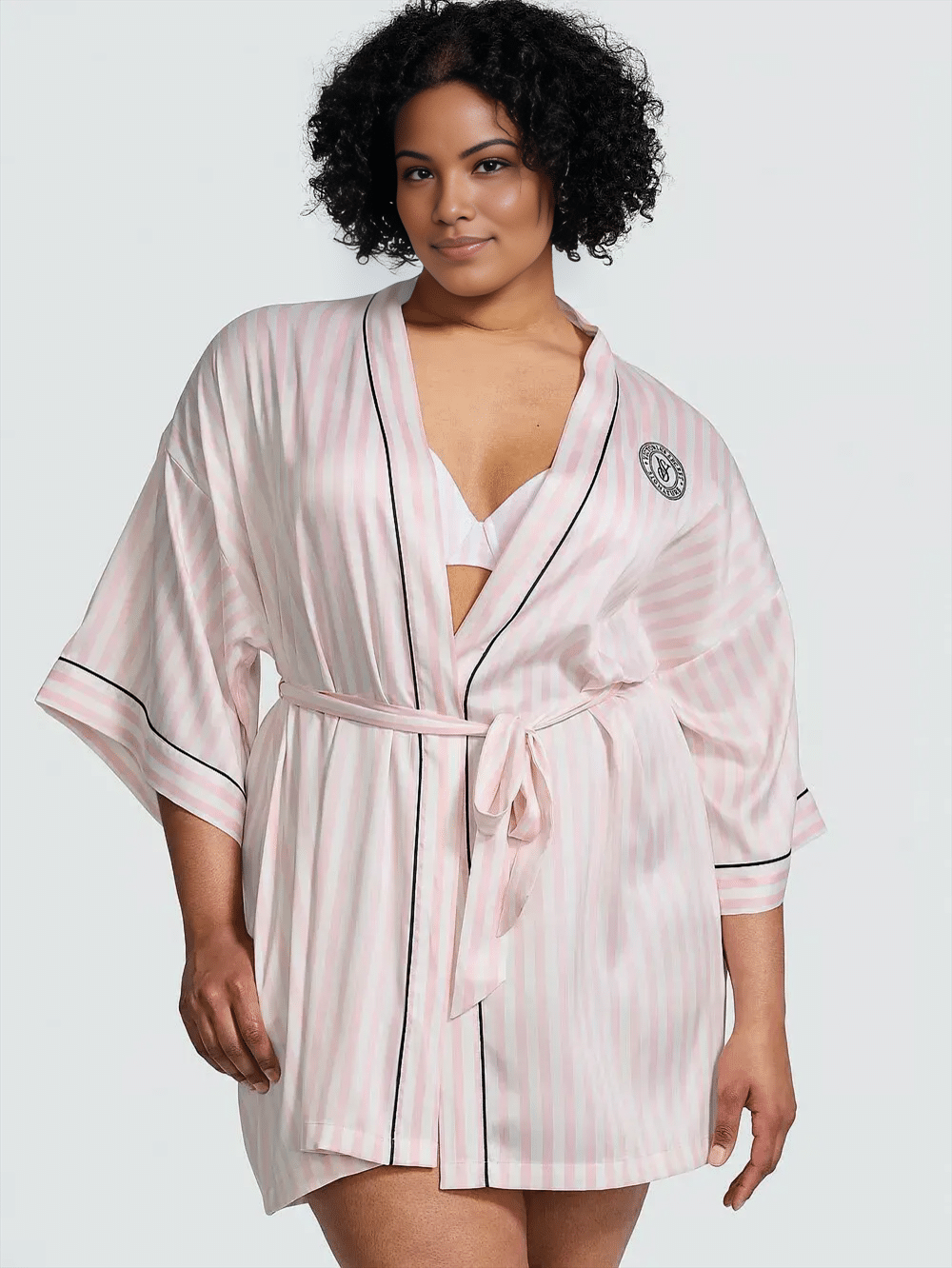 Цей шовковистий атласний халат, спеціально розроблений для легендарного нового шоу, який тепер повернувся і став ще кращим, ніж будь-коли, у культовій рожевій смужці Victoria’s Secret, яку ви знаєте та любите.