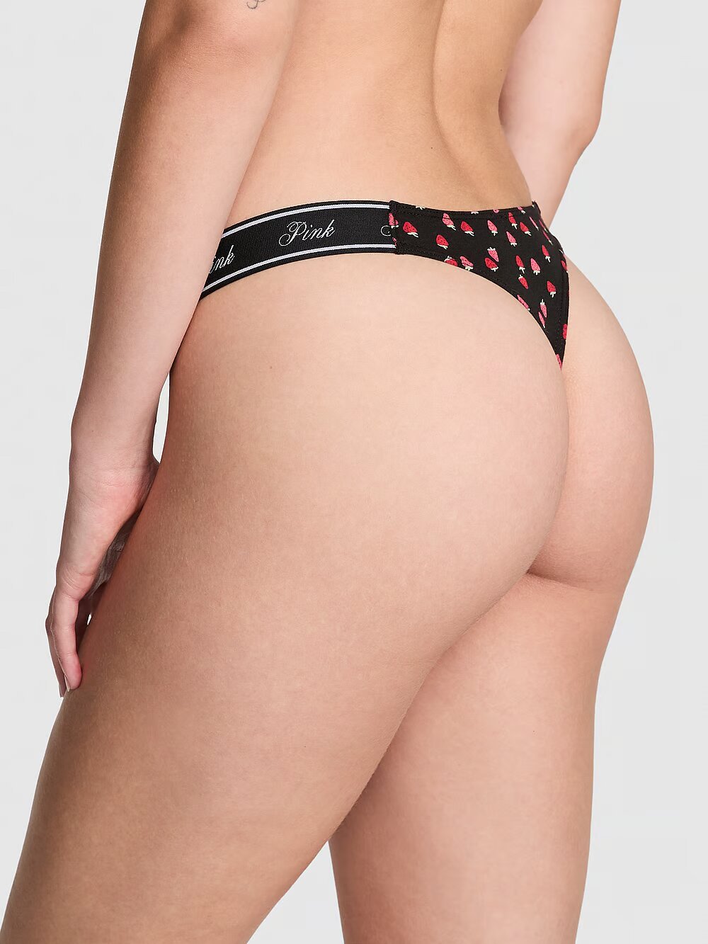 Бавовняні трусики тонг PINK Logo Cotton High-Leg Thong Panty