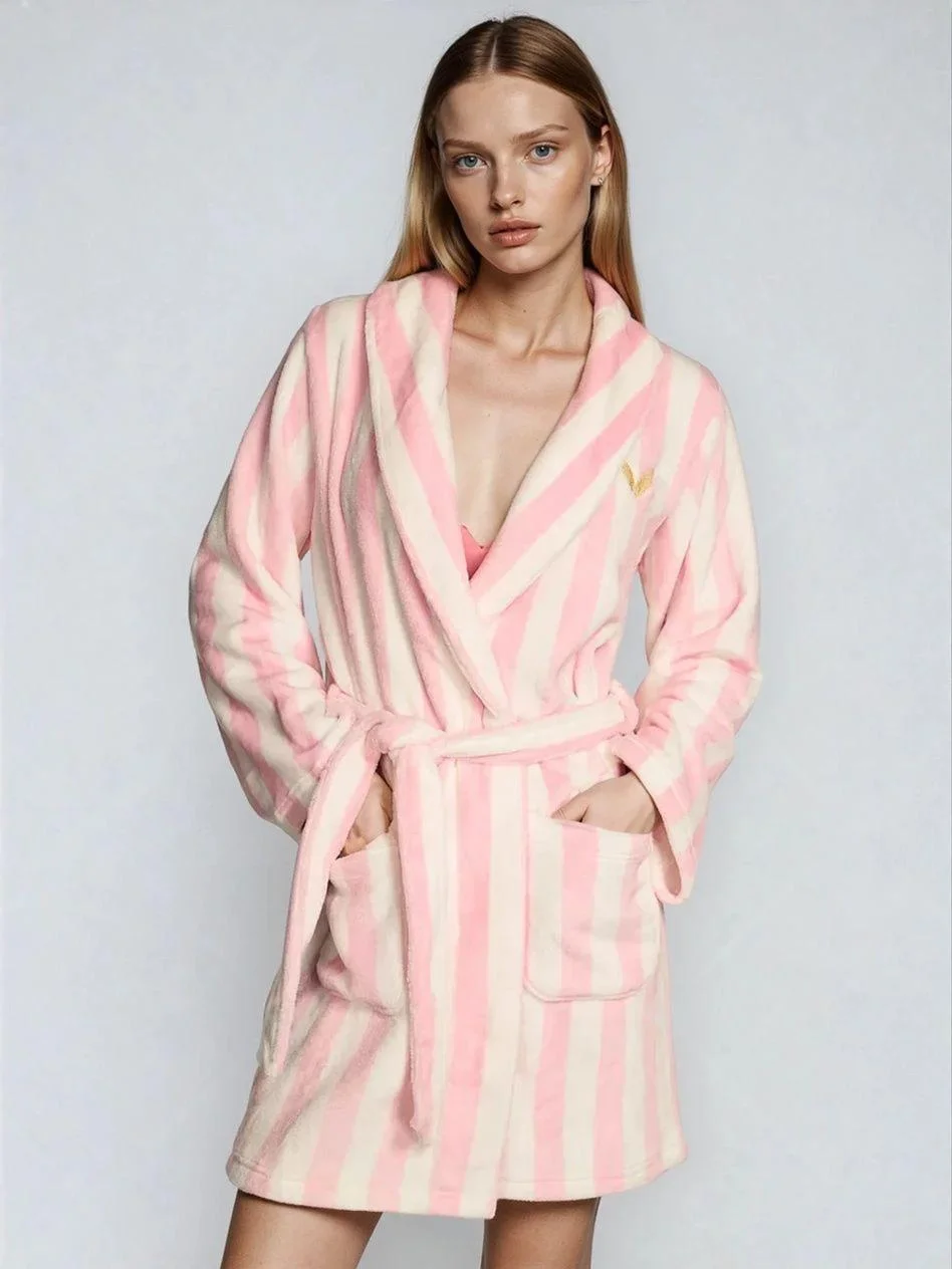 Короткий халат Victoria’s Secret Short Cozy Robe – Рожева смужка