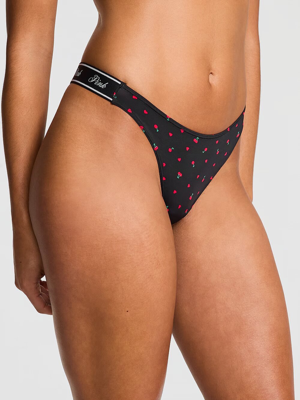 Хлопковые трусики тонг PINK Logo Cotton High-Leg Thong Panty