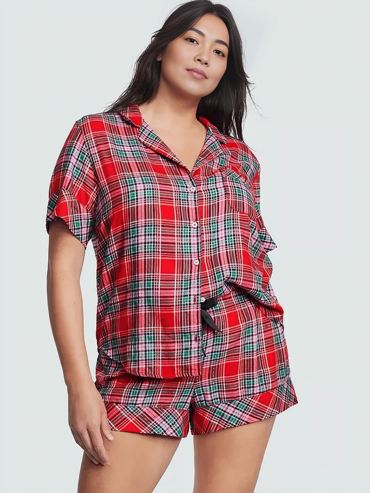 - Стильний дизайн. Фланелева піжама з шортиками від Вікторії Сикрет має елегантний дизайн із модним візерунком, який робить її не тільки зручною, а й стильною.