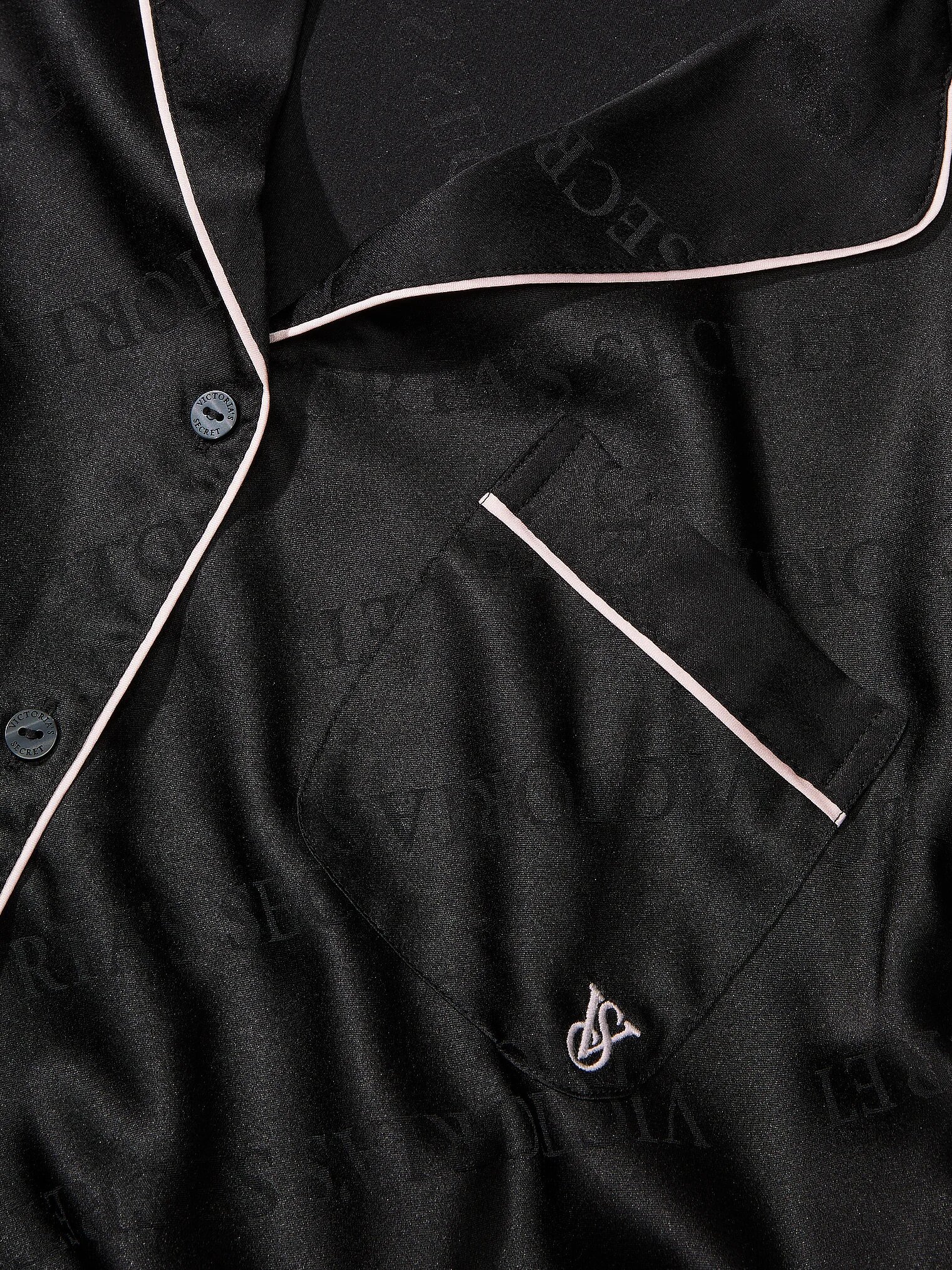 Легкая, мягкая, как шелк и приятная пижама из роскошной атласной ткани с застежкой на пуговицы, отложным воротником с разрезами и отделкой декоративным кантом.
