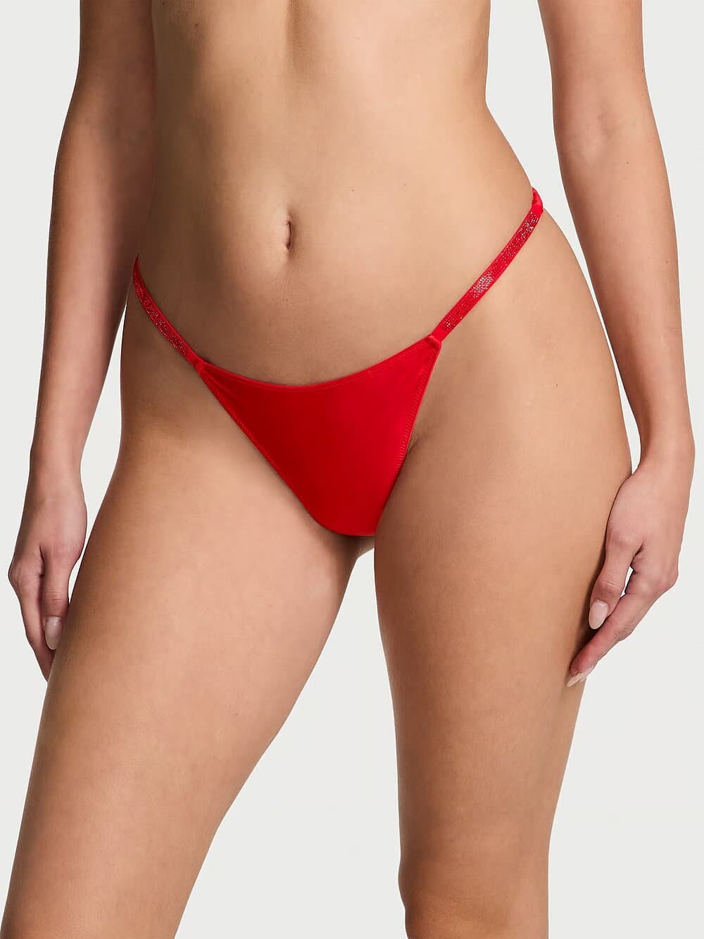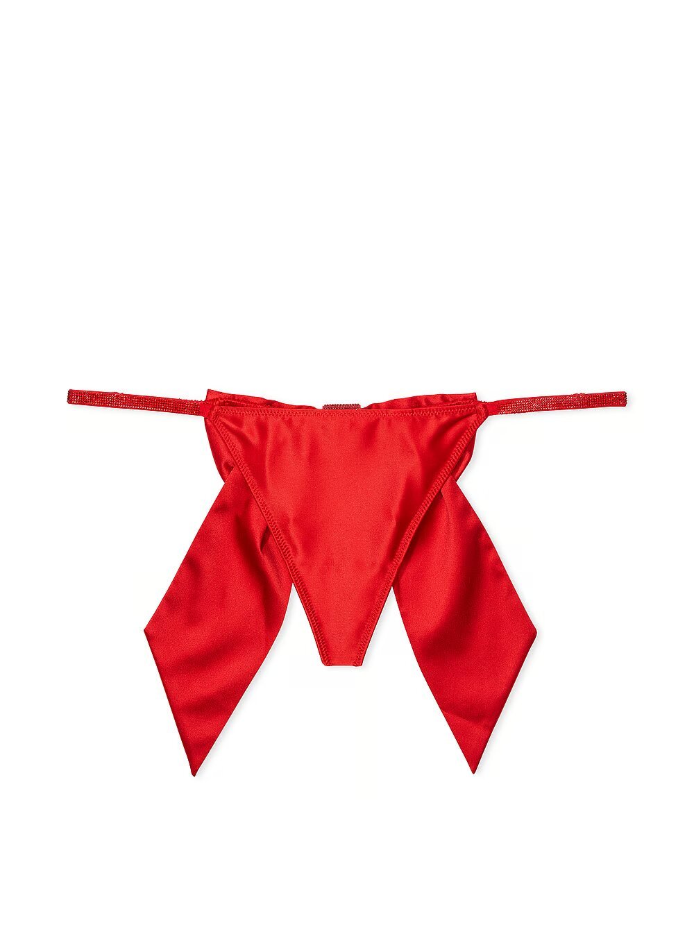 Эти шелковисто-гладкие трусики Victoria`s Secret из глянцевого атласа украшены мерцающими кристаллами и праздничным бантом сзади.